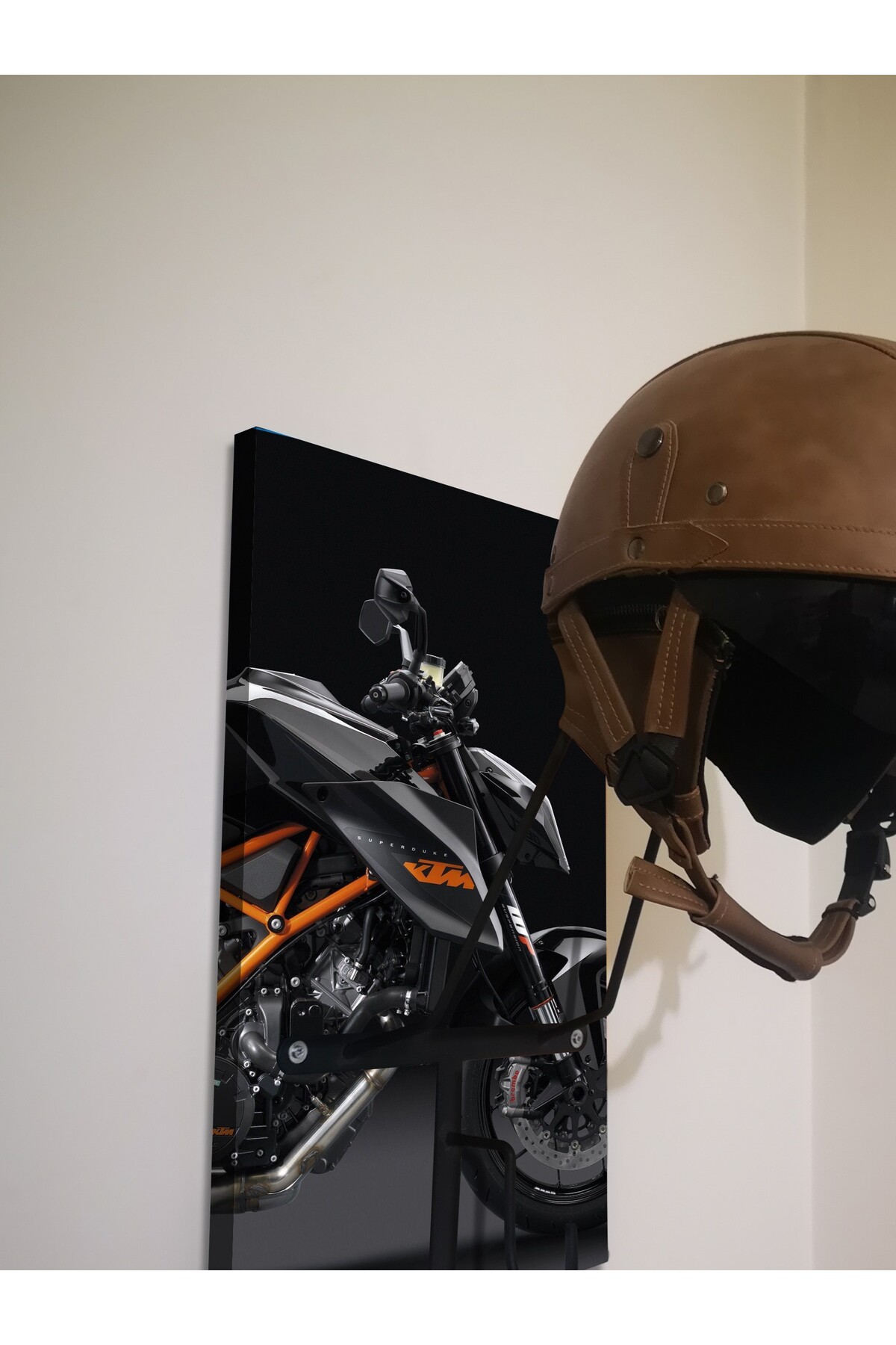 SPECIAL HELMET RACK, MOUNT, EQUIPMENT RACK FOR MOTORCYCLISTS Product Features SPECIAL DESIGN THAT DOES NOT CONTACT THE PAD - Metal part angles and lengths are specially designed and do not come into contact with the protective pad inside the helmet. When you place your helmet correctly, it rests on the visor upper gap and the upper part of the neck, allowing your helmet to lie flat as if it were on your head, without touching the pad. - The metal design of the helmet hangers is independent of the size of your helmet and is suitable for any size. - It is manufactured using 6mm Transmission iron. It does not bend or bend and is extremely durable. - Baked Electrostatic Black Matte Texture Painted. In this way, the metal parts do not scratch or rust and maintain their form for years. - Panels used in wooden models are manufactured from BB - BC quality natural wood solid panels (models with smooth edges are X2-MP, Pine or Spruce) or from single-piece natural wood panels specially cut from imported Russian pine (models with natural appearance are X2-Natura). . - Printed and illustrated models are Glossy 1st Class Canvas prints. The canvas print is placed on a wooden panel and stapled at the back. HELMET RANGER, COAT RANGER and KEYRING HANGER - 2 cobra hooks are delivered with the product to hang your keys. You can mount these hooks at any point you want on the panel. - There is a hook on each metal part to hang your coat on the helmet hanger rails with a clothes hanger. Metal parts are delivered disassembled to prevent damage to the panel during shipping. You can mount it practically with 3 screws. Screws and washers are packaged within the product. EASY INSTALLATION Easy installation with two hangers on the back. It is enough to place a dowel and two screws on the wall. You hang the product like a painting. Since the wall type is unknown, the screws and dowels to mount it on the wall are not included in the package. Product Dimensions SINGLE HANGERS - 30X50cm brand panel size. DOUBLE HANGERS - 30x70cm brand wooden panel size. ECO MODEL - 10x50cm brand wooden panel size. PERSONALIZATION - If personalization is desired on the panel, NAME-SURNAME, LOGO or NAME can be engraved with CNC Laser, free of charge, in the lower left corner. - If orders come through sales channels, Genuine Leather is personalized and added to the package. You can easily stick it to any corner of the panel you want. -Do not forget to send your photos in the appropriate resolution and format for our hangers prepared as canvas prints. IN CASE OF SHIPPING AND DAMAGE - Damage to the product in cargo is a very rare situation that we encounter, but we kindly ask you to contact us. We always replace the damaged part with a new one. - It is very important for you to take time for your damaged cargo and keep a cargo damage report so that our efforts do not go to waste. Even if there is no report, we will definitely be resolving your grievance. NOTE: Helmets and coats are not for sale. The product on sale is HELMET RACK. GGARTDECORATION GGARTHANDMADE ls2, axxis,nexx, jk20, ncr, sway, helmets, bell, freem, jarvis, mt, gopro, gdr, caberg,agv, aerowind, cox, ncr, jk, tex, shark, shoei, airoh, givi, hjc, suomy, arai,premier, revit, tucano, vexo, rsv, harley, venom, motul, oem, jiekai, monero,bering, kappa, salomon, nero, momo, macna, knmaster, schuberth, shiro, iron, akrapovic, rectus, gojo, mitas, daniese, divortex, vizor, putoline, ktm, yuma, buffer, ariete, shad, schulzz, bitwell, universal, maxxis, leyaton, tiens, bajaj, gogo, andes