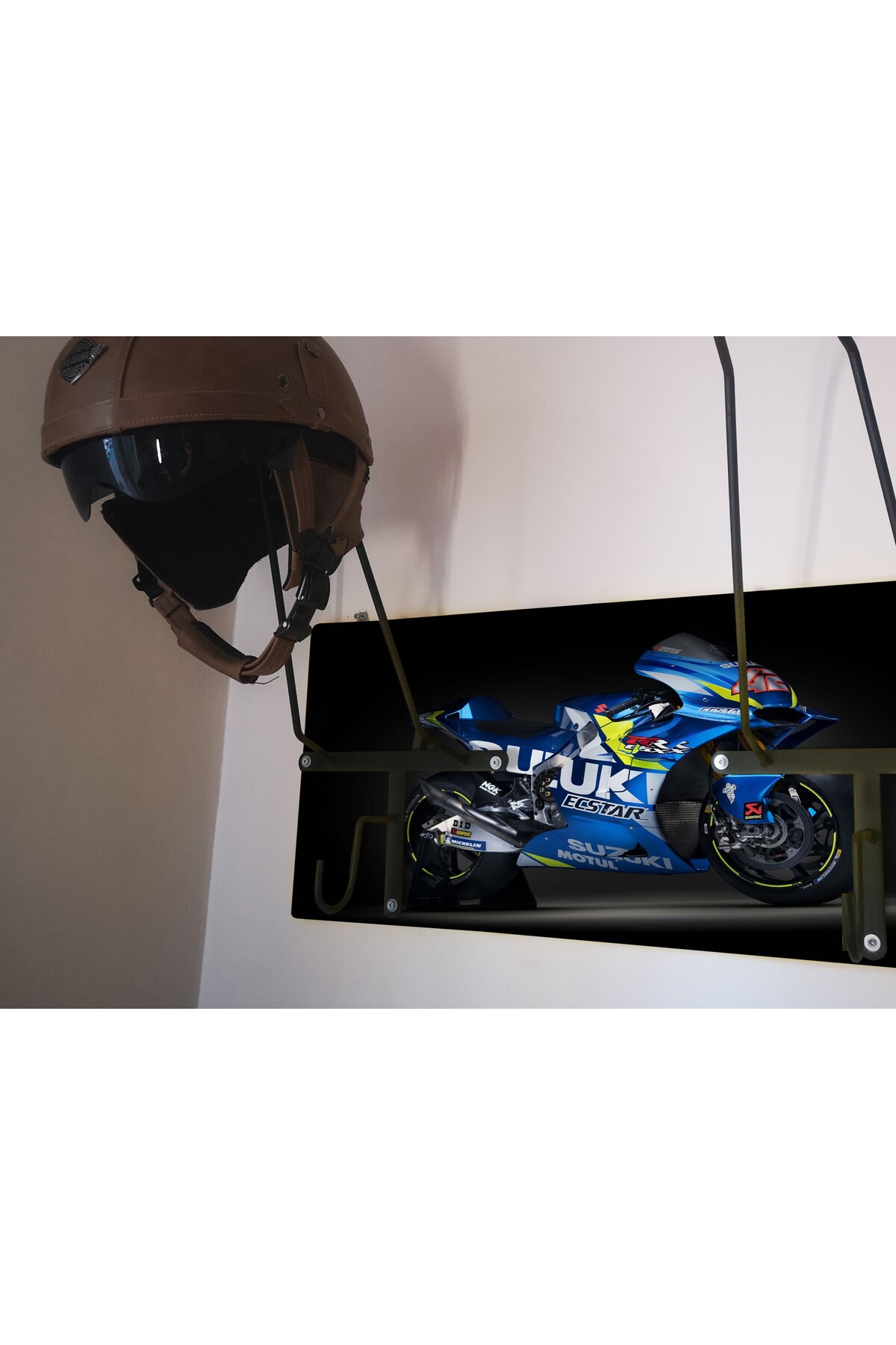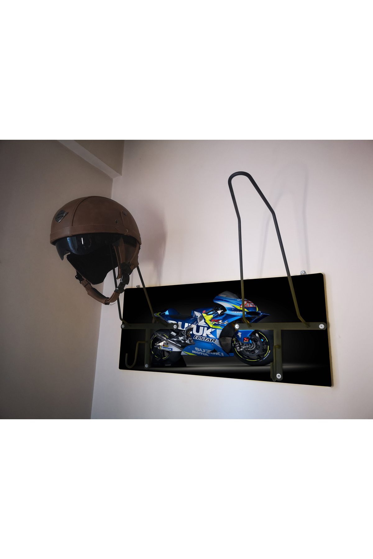 SPECIAL HELMET RACK, MOUNT, EQUIPMENT RACK FOR MOTORCYCLISTS Product Features SPECIAL DESIGN THAT DOES NOT CONTACT THE PAD - Metal part angles and lengths are specially designed and do not come into contact with the protective pad inside the helmet. When you place your helmet correctly, it rests on the visor upper gap and the upper part of the neck, allowing your helmet to lie flat as if it were on your head, without touching the pad. - The metal design of the helmet hangers is independent of the size of your helmet and is suitable for any size. - It is manufactured using 6mm Transmission iron. It does not bend or bend and is extremely durable. - Baked Electrostatic Black Matte Texture Painted. In this way, the metal parts do not scratch or rust and maintain their form for years. - Panels used in wooden models are manufactured from BB - BC quality natural wood solid panels (models with smooth edges are X2-MP, Pine or Spruce) or from single-piece natural wood panels specially cut from imported Russian pine (models with natural appearance are X2-Natura). . - Printed and illustrated models are Glossy 1st Class Canvas prints. The canvas print is placed on a wooden panel and stapled at the back. HELMET RANGER, COAT RANGER and KEYRING HANGER - 2 cobra hooks are delivered with the product to hang your keys. You can mount these hooks at any point you want on the panel. - There is a hook on each metal part to hang your coat on the helmet hanger rails with a clothes hanger. Metal parts are delivered disassembled to prevent damage to the panel during shipping. You can mount it practically with 3 screws. Screws and washers are packaged within the product. EASY INSTALLATION Easy installation with two hangers on the back. It is enough to place a dowel and two screws on the wall. You hang the product like a painting. Since the wall type is unknown, the screws and dowels to mount it on the wall are not included in the package. Product Dimensions SINGLE HANGERS - 30X50cm brand panel size. DOUBLE HANGERS - 30x70cm brand wooden panel size. ECO MODEL - 10x50cm brand wooden panel size. PERSONALIZATION - If personalization is desired on the panel, NAME-SURNAME, LOGO or NAME can be engraved with CNC Laser, free of charge, in the lower left corner. - If orders come through sales channels, Genuine Leather is personalized and added to the package. You can easily stick it to any corner of the panel you want. -Do not forget to send your photos in the appropriate resolution and format for our hangers prepared as canvas prints. IN CASE OF SHIPPING AND DAMAGE - Damage to the product in cargo is a very rare situation that we encounter, but we kindly ask you to contact us. We always replace the damaged part with a new one. - It is very important for you to take time for your damaged cargo and keep a cargo damage report so that our efforts do not go to waste. Even if there is no report, we will definitely be resolving your grievance. NOTE: Helmets and coats are not for sale. The product on sale is HELMET RACK. GGARTDECORATION GGARTHANDMADE ls2, axxis,nexx, jk20, ncr, sway, helmets, bell, freem, jarvis, mt, gopro, gdr, caberg,agv, aerowind, cox, ncr, jk, tex, shark, shoei, airoh, givi, hjc, suomy, arai,premier, revit, tucano, vexo, rsv, harley, venom, motul, oem, jiekai, monero,bering, kappa, salomon, nero, momo, macna, knmaster, schuberth, shiro, iron, akrapovic, rectus, gojo, mitas, daniese, divortex, vizor, putoline, ktm, yuma, buffer, ariete, shad, schulzz, bitwell, universal, maxxis, leyaton, tiens, bajaj, gogo, andes