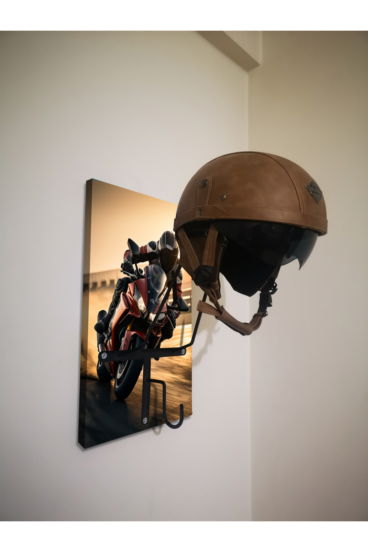 SPECIAL HELMET RACK, MOUNT, EQUIPMENT RACK FOR MOTORCYCLISTS Product Features SPECIAL DESIGN THAT DOES NOT CONTACT THE PAD - Metal part angles and lengths are specially designed and do not come into contact with the protective pad inside the helmet. When you place your helmet correctly, it rests on the visor upper gap and the upper part of the neck, allowing your helmet to lie flat as if it were on your head, without touching the pad. - The metal design of the helmet hangers is independent of the size of your helmet and is suitable for any size. - It is manufactured using 6mm Transmission iron. It does not bend or bend and is extremely durable. - Baked Electrostatic Black Matte Texture Painted. In this way, the metal parts do not scratch or rust and maintain their form for years. - Panels used in wooden models are manufactured from BB - BC quality natural wood solid panels (models with smooth edges are X2-MP, Pine or Spruce) or from single-piece natural wood panels specially cut from imported Russian pine (models with natural appearance are X2-Natura). . - Printed and illustrated models are Glossy 1st Class Canvas prints. The canvas print is placed on a wooden panel and stapled at the back. HELMET RANGER, COAT RANGER and KEYRING HANGER - 2 cobra hooks are delivered with the product to hang your keys. You can mount these hooks at any point you want on the panel. - There is a hook on each metal part to hang your coat on the helmet hanger rails with a clothes hanger. Metal parts are delivered disassembled to prevent damage to the panel during shipping. You can mount it practically with 3 screws. Screws and washers are packaged within the product. EASY INSTALLATION Easy installation with two hangers on the back. It is enough to place a dowel and two screws on the wall. You hang the product like a painting. Since the wall type is unknown, the screws and dowels to mount it on the wall are not included in the package. Product Dimensions SINGLE HANGERS - 30X50cm brand panel size. DOUBLE HANGERS - 30x70cm brand wooden panel size. ECO MODEL - 10x50cm brand wooden panel size. PERSONALIZATION - If personalization is desired on the panel, NAME-SURNAME, LOGO or NAME can be engraved with CNC Laser, free of charge, in the lower left corner. - If orders come through sales channels, Genuine Leather is personalized and added to the package. You can easily stick it to any corner of the panel you want. -Do not forget to send your photos in the appropriate resolution and format for our hangers prepared as canvas prints. IN CASE OF SHIPPING AND DAMAGE - Damage to the product in cargo is a very rare situation that we encounter, but we kindly ask you to contact us. We always replace the damaged part with a new one. - It is very important for you to take time for your damaged cargo and keep a cargo damage report so that our efforts do not go to waste. Even if there is no report, we will definitely be resolving your grievance. NOTE: Helmets and coats are not for sale. The product on sale is HELMET RACK. GGARTDECORATION GGARTHANDMADE ls2, axxis,nexx, jk20, ncr, sway, helmets, bell, freem, jarvis, mt, gopro, gdr, caberg,agv, aerowind, cox, ncr, jk, tex, shark, shoei, airoh, givi, hjc, suomy, arai,premier, revit, tucano, vexo, rsv, harley, venom, motul, oem, jiekai, monero,bering, kappa, salomon, nero, momo, macna, knmaster, schuberth, shiro, iron, akrapovic, rectus, gojo, mitas, daniese, divortex, vizor, putoline, ktm, yuma, buffer, ariete, shad, schulzz, bitwell, universal, maxxis, leyaton, tiens, bajaj, gogo, andes
