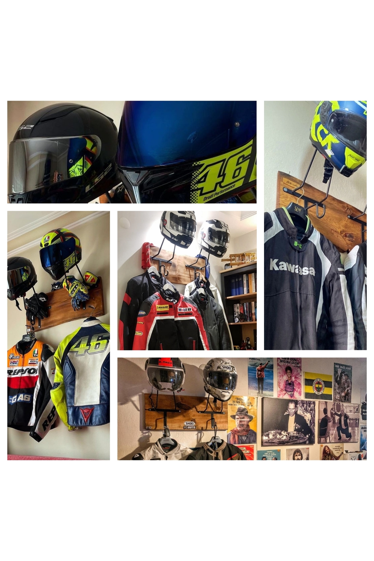 SPECIAL HELMET HANGER, COAT RACK, EQUIPMENT RACK FOR MOTORCYCLERS Product Features SPECIAL DESIGN THAT DOES NOT CONTACT THE PAD - Metal part angles and lengths are specially designed and do not come into contact with the protective pad inside the helmet. When you place your helmet correctly, it rests on the visor upper gap and the upper part of the neck, allowing your helmet to lie flat as if it were on your head, without touching the pad. - The metal design of the helmet hangers is independent of the size of your helmet and is suitable for all sizes. - It is manufactured using 6mm Transmission iron. It does not bend or bend and is extremely durable. - Baked Electrostatic Black Matte Texture Painted. In this way, the metal parts do not scratch or rust and maintain their form for years. - Panels used in wooden models are made of BB - BC quality natural wood solid panels (models with smooth edges are X2-MP, Pine or Spruce) or specially cut from imported Russian pine and made of solid, one-piece natural wood panels (models with natural looking edges are X2-Natura). is manufactured. - Printed and illustrated models are Glossy 1st Class Canvas prints. The canvas print is placed on a wooden panel and stapled at the back. HELMET RACK, COAT RANGER and KEYRING RANGER - 2 cobra hooks are delivered with the product to hang your keys. You can mount these hooks at any point you want on the panel. - There is a hook on each metal part of the helmet hanger bars to hang your coat on the clothes hanger. Metal parts are delivered disassembled to prevent damage to the panel during shipping. You can mount it practically with 3 screws. Screws and washers are packaged within the product. EASY INSTALLATION Easy installation with two hangers on the back. All you have to do is place a dowel and two screws on the wall. You hang the product like a painting. Since the wall type is unknown, the screws and dowels to mount it on the wall are not included in the package. Product Dimensions SINGLE HANGERS - 30X50cm back panel size. DOUBLE HANGERS - 30x70cm back wood panel size. ECO MODEL - 10x50cm back wood panel size. PERSONALIZATION - If personalization is desired on the panel, NAME-SURNAME, LOGO or NICKNAME can be engraved with CNC Laser, free of charge, in the lower left corner. - If orders come from sales channels, Genuine Leather is personalized and added to the package. You can easily stick it to any corner of the panel you want. - Do not forget to send your photos in the appropriate resolution and format for our hangers prepared as canvas prints. IN CASE OF SHIPPING AND DAMAGE - Although it is a very, very rare situation that we encounter the product being damaged in shipping, we kindly ask you to please contact us. We always deliver a new one to replace the damaged part. - It is very important for you to spare time for your damaged cargo and keep a cargo damage report so that our efforts do not go to waste. Even if there is no report, we will definitely resolve your grievance. GGART DECORATION - GGART HANDMADE