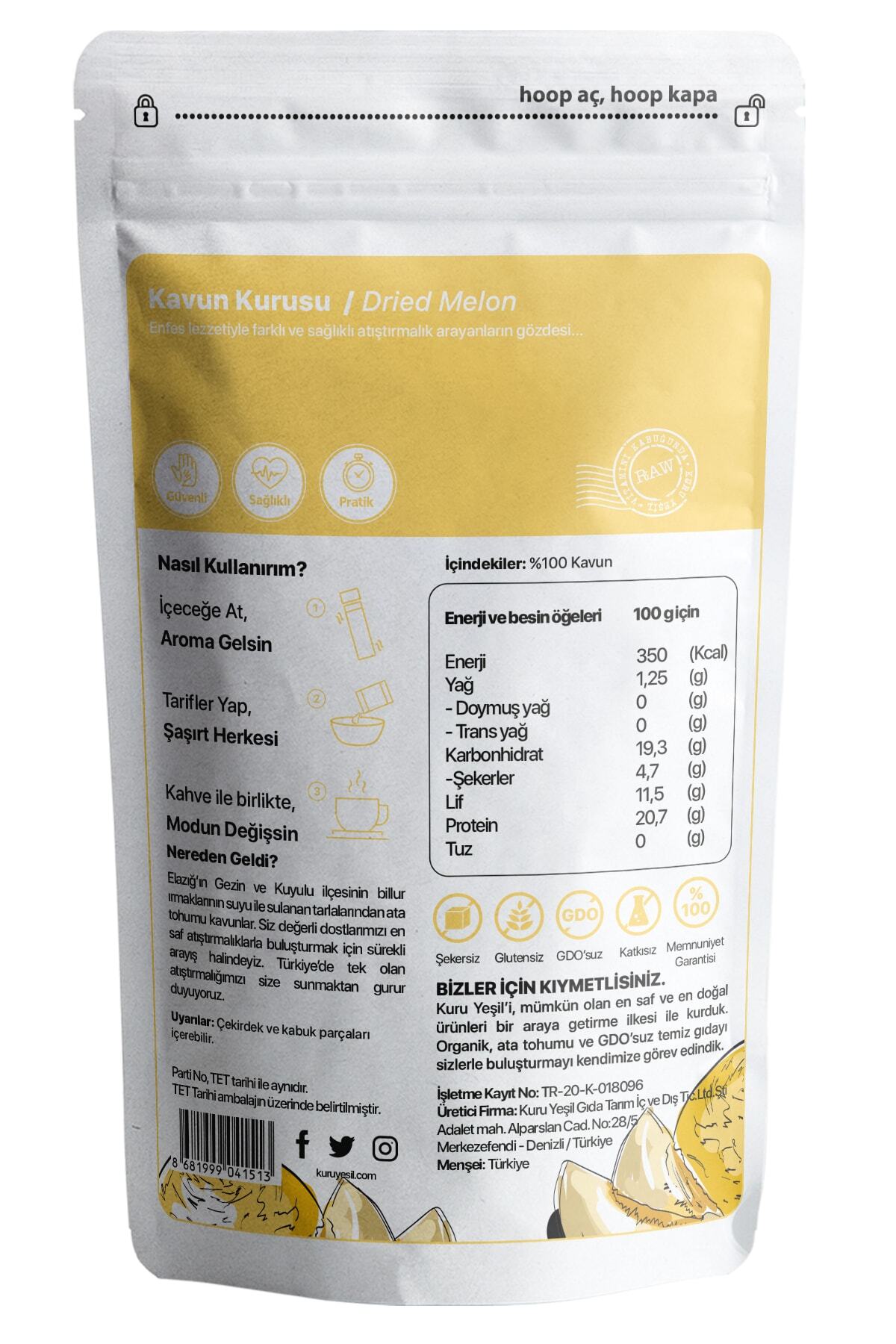 New Season Dried Melon 50 gr | No Added Sugar | Dried Fruit | Dried Melon - Sugar-Free New Season Dried Melon, Natural Flavor