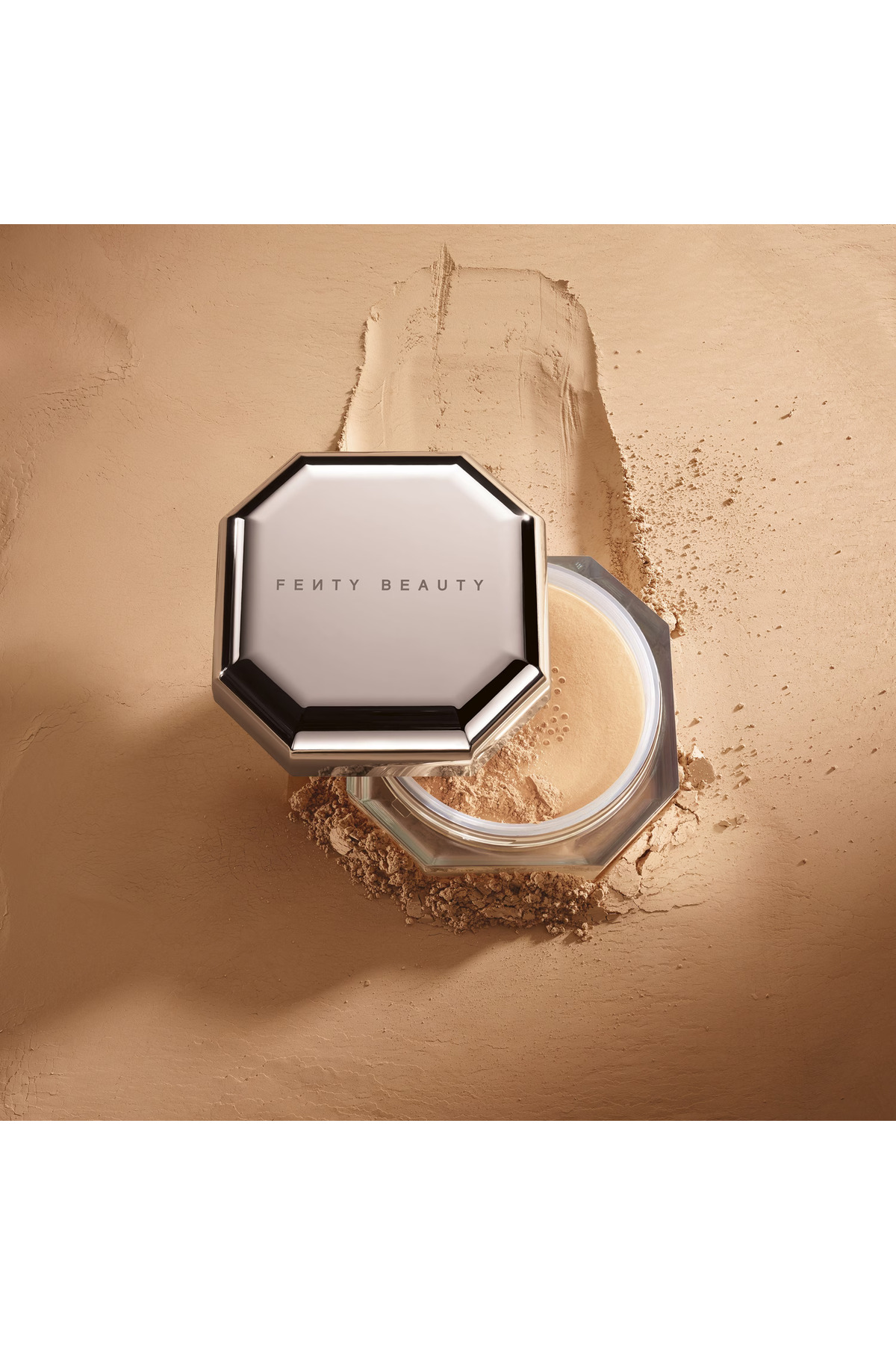 This ultra-fine and incredibly silky loose powder sets makeup. It hides pores, fine lines and imperfections, creating a softer and smoother filtered effect. Rihanna wanted to create a setting powder that didn't leave a whitish effect and was designed for absolutely all women. So, you can enjoy matte and smooth makeup and achieve the finished photo-ready look. Vegan: Products produced with naturally derived ingredients