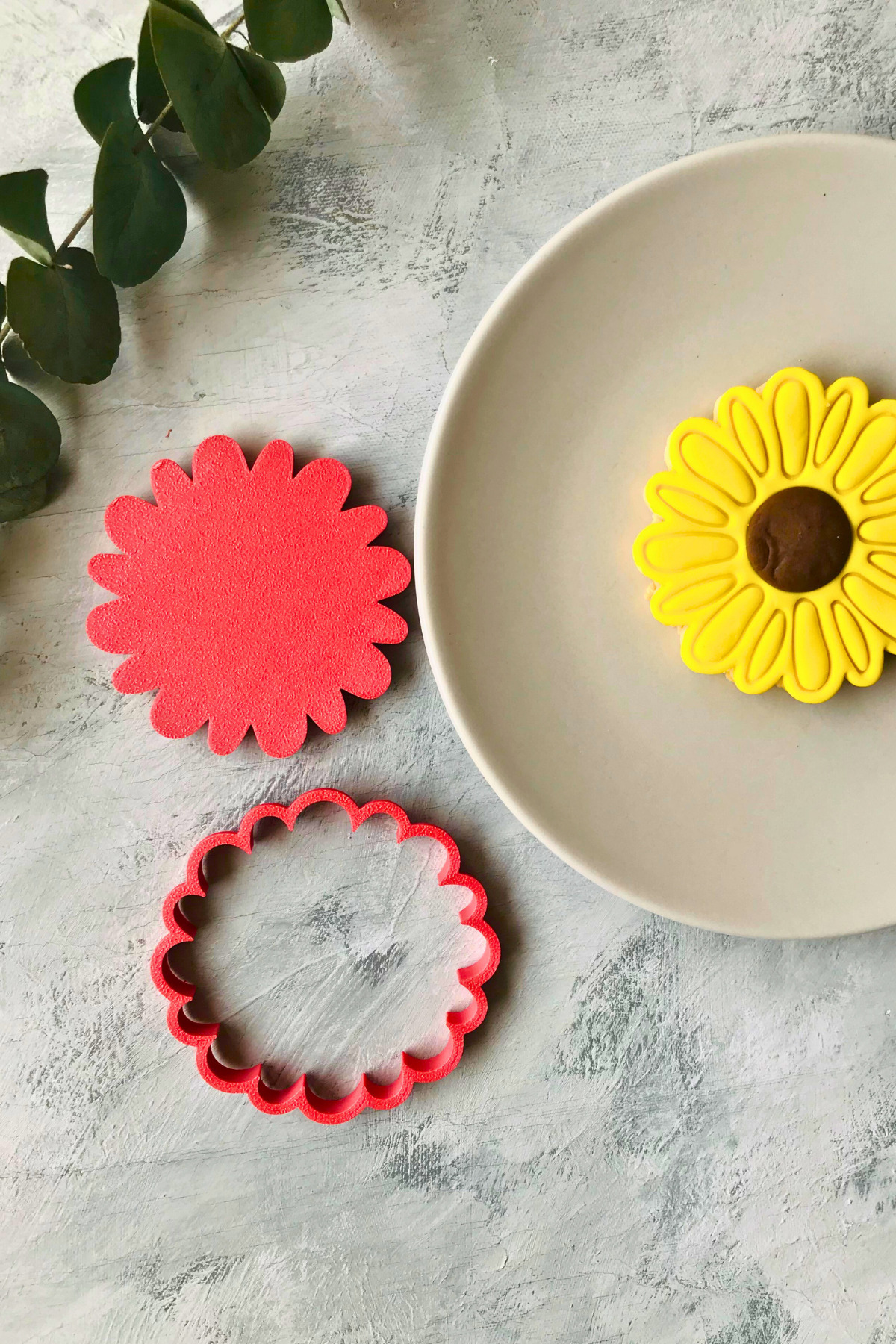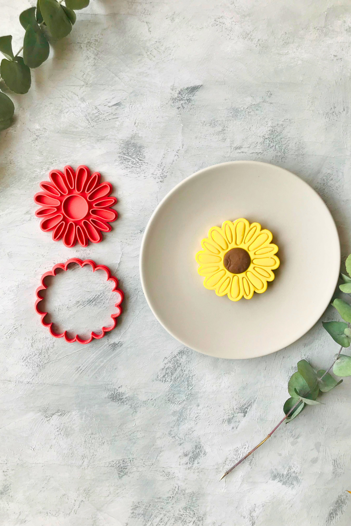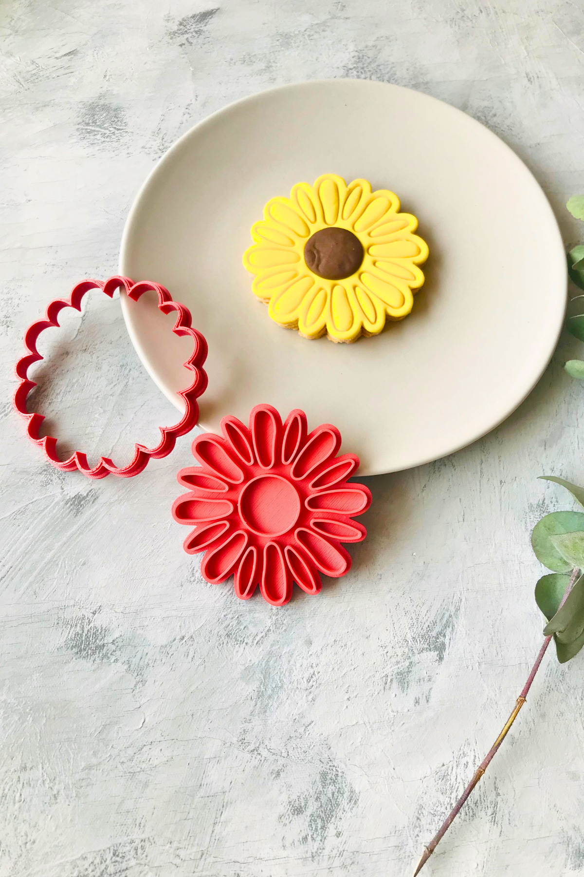 Red Daisy 2-Piece Dough Shaper / Cookie Mold / Assorted Color / 9x9 cm in size.