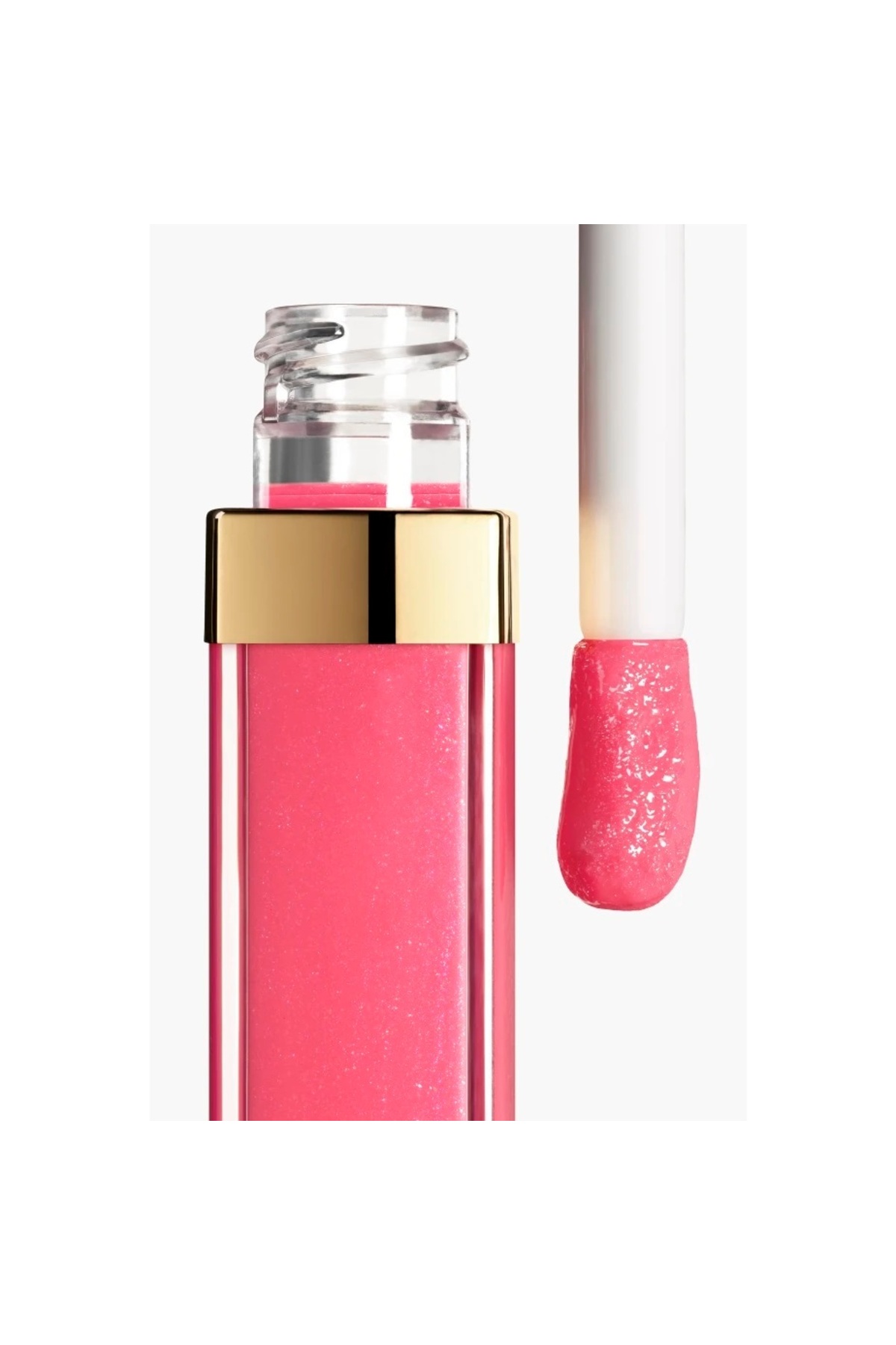 CHANEL ROUGE presents COCO GLOSS; The irresistible, intensely shimmering lip gloss moisturizes lips for up to 8 hours*. Its appetizing intense, iridescent, transparent, non-sticky gel formula with bright color alternatives is easily applied. Its Hydraboost complex derived from natural waxes (jojoba, sunflower and mimosa) and its formula enriched with natural coconut oil instantly moisturizes the lips and nourishes them day by day, leaving them soft and soft. It makes them smooth. Its smooth texture integrates with the lips and provides a long-lasting, intensely shiny and wet-looking finish.