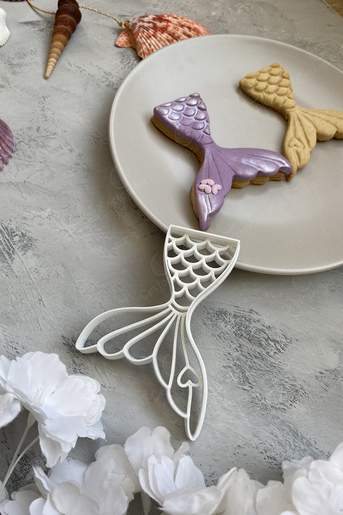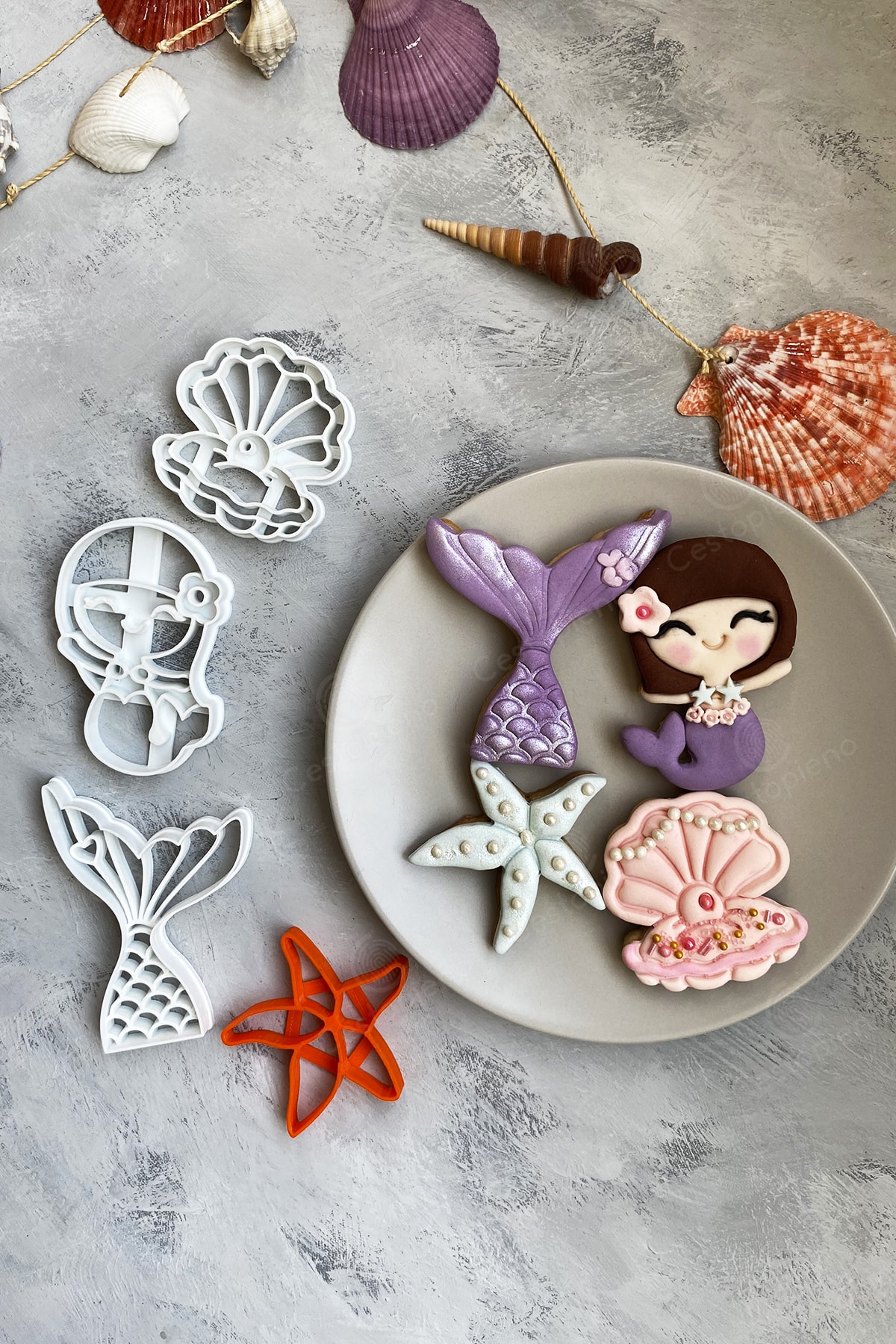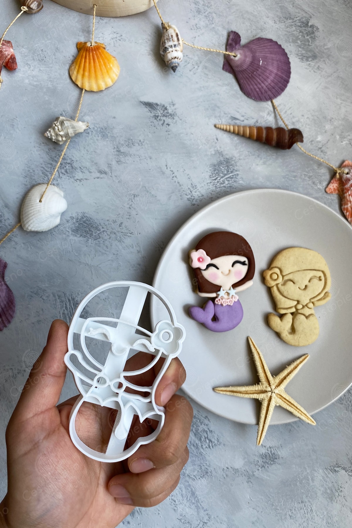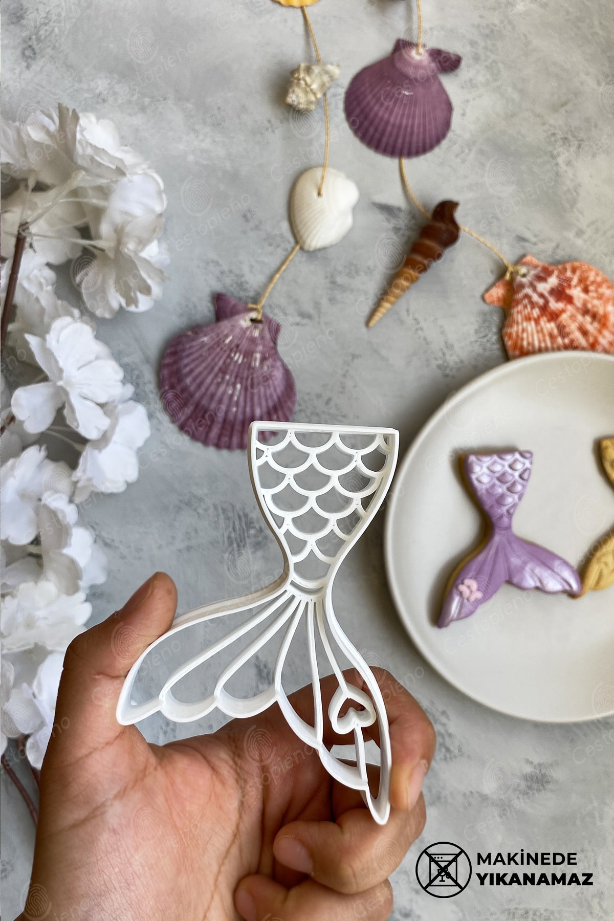 Starfish is 7x7 cm in size. Mermaid measures 6x9 cm. The tail is 7x10 cm in size. Mussel with Pearls is 6x6 cm in size. It should not be exposed to temperatures above 50 degrees. It should not be washed in the machine. Wash by hand. It is produced with Bioplastic raw material, which can be dissolved in nature in a short time. Suitable for use with Cookie Dough, Sugar Dough, Play Dough and Ceramic Dough.