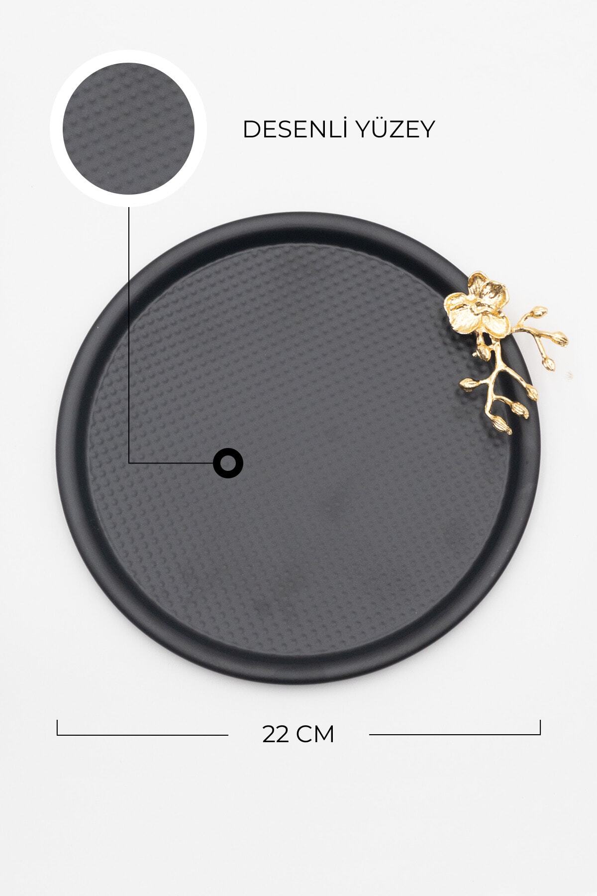2 pieces, 22 cm, single, patterned, black round metal tray with Japanese Roses. ; Product Dimensions: Width/Length 22cm; It can be used for tea service, coffee service, dessert service, cake service. ; The product has different colors and models. Please review our store. ; This product is produced in the Fancy Products Workshop. ; Since it is handmade, there may be a difference in tone in the products. ; It has tarnish and stainless properties. ; It is not suitable to be washed in the dishwasher. It is recommended to dry the products after each wash to preserve their quality and shine. ;
