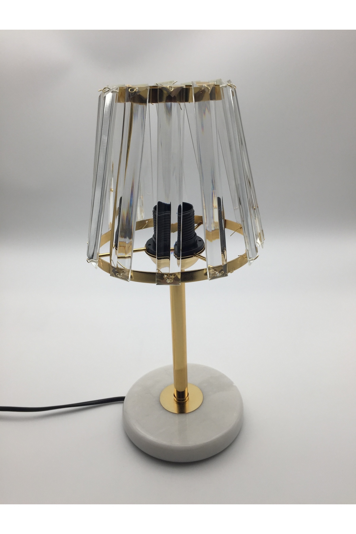 Set of 2 Gold Crystal Glass Lampshades, Decorative Table Lamp with Marble Legs
