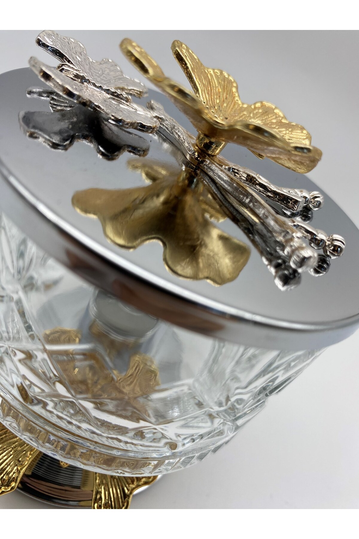 Product Dimensions: Bowl diameter is 9 cm, height is 6 cm, capacity is 235 cc. Metal foot height is 7 cm. The silver timeless model glass magnolia bowl with feet, which will add elegance to your kitchen and tables, stands out with its stylish design and versatile use. This butterfly lid ice cream bowl, sugar bowl and snack jam bowl set allows you to reflect your style when presenting to your guests. Stylish Design: It provides an aesthetic appearance with its gold color and timeless patterned glass bowl. Versatile Use: Ideal for presenting many foods such as ice cream, candy, cookies and jam. Elegant Details: You can make elegant presentations on special occasions and invitations with its butterfly detail.