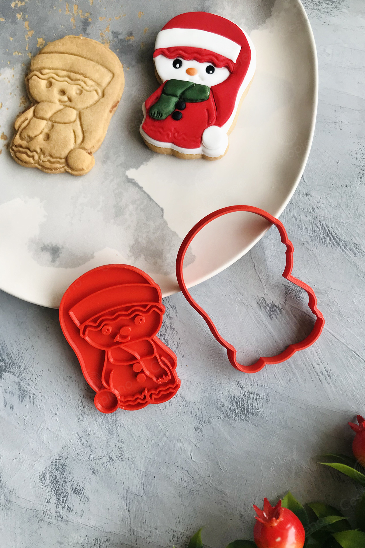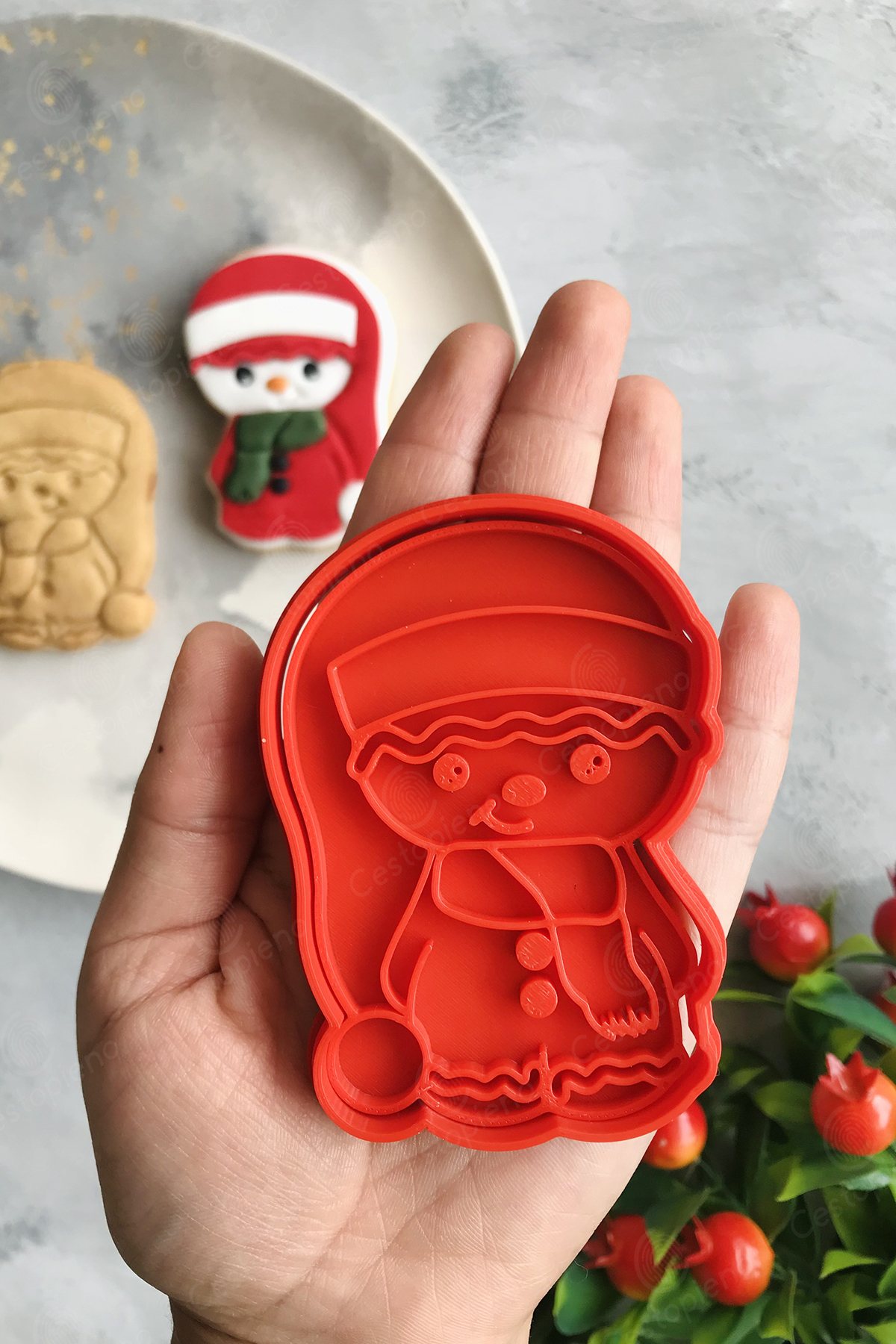 Snowman with Red Long Hat Dough Shaper / Cookie, Game, Ceramic / 6X9 cm