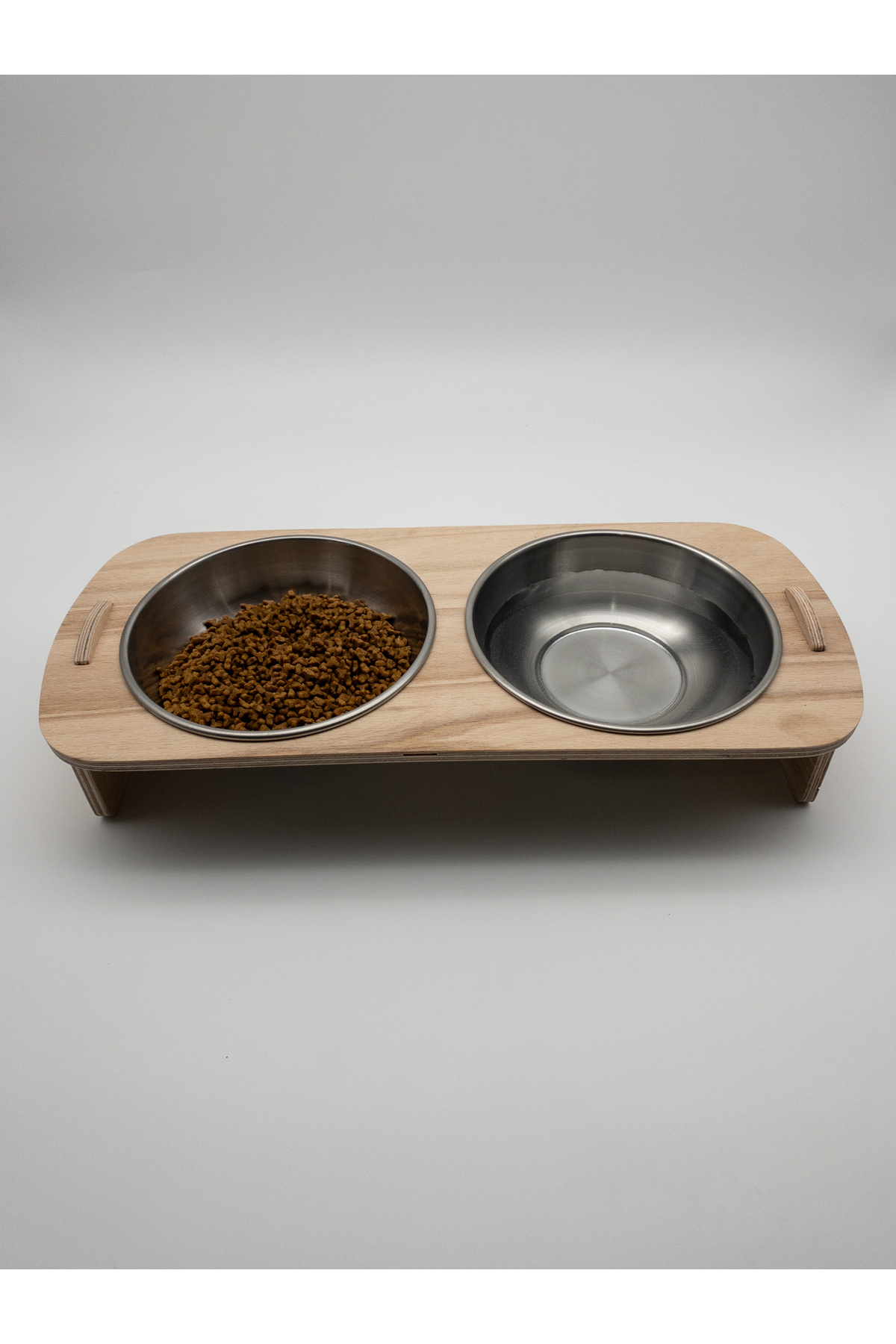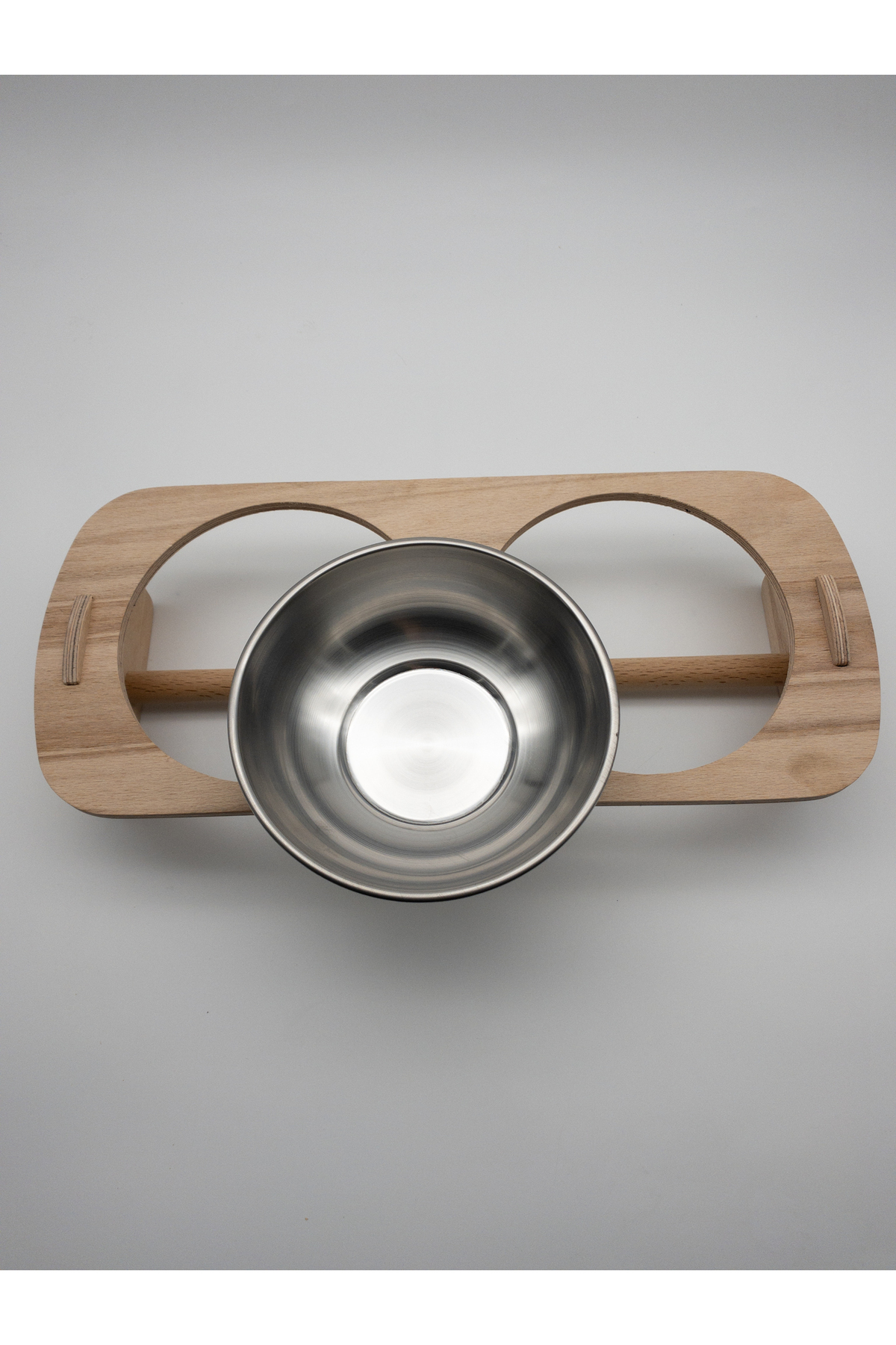 Product Dimensions: Wooden Stand Dimensions: width 18cm, length 42cm, height 8cm. Bowl Size mouth diameter 16cm, inner depth 5cm. ; Designed for your pet friends, this stylish and durable Wooden Cat Dog Food and Water Bowl with Stainless Steel Bowl combines both aesthetics and functionality. Made from premium quality materials, this food and water bowl is an ideal option for your pets to live a healthy and happy life. ; Stainless Steel Design: Stainless steel material is known for its durability and long-lasting use. This food and water bowl is made of stainless steel, thus providing a hygienic environment and preventing the formation of rust. Additionally, thanks to its easy-to-clean feature, cleaning processes are extremely practical. ; Wooden Details: The product is enriched with wooden details, which offers both a modern and warm appearance. The wooden frame will blend in with your home decor and provide your pet friends with a comfortable mealtime experience. ; This product, which prioritizes the health and comfort of your pet friends, draws attention with both its visual aesthetics and functionality. This food and water bowl, which stands out with its combination of stainless steel and wood materials, allows you to enjoy providing a special living space for your pets. ;
